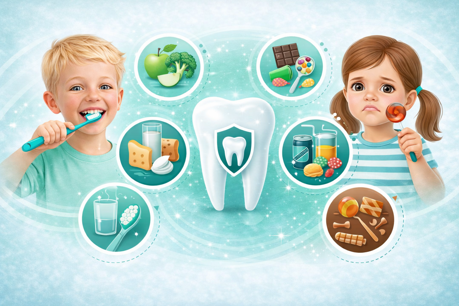 Encouraging children to eat nutrient-rich foods can help protect their developing teeth.